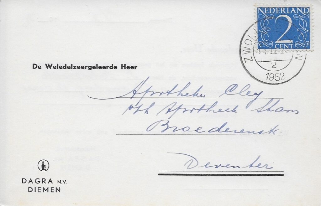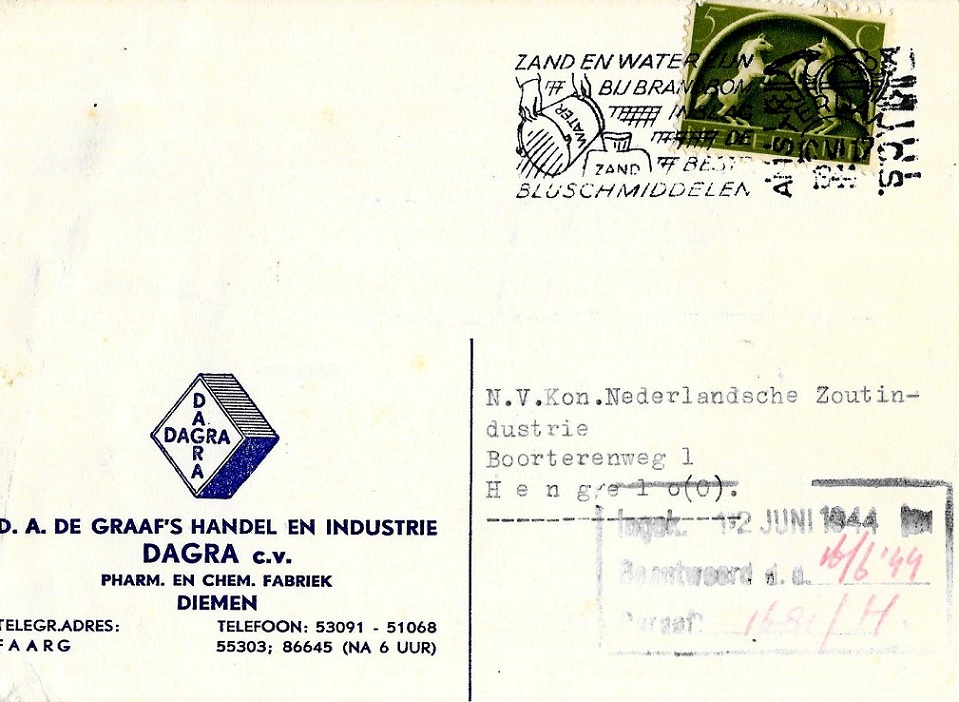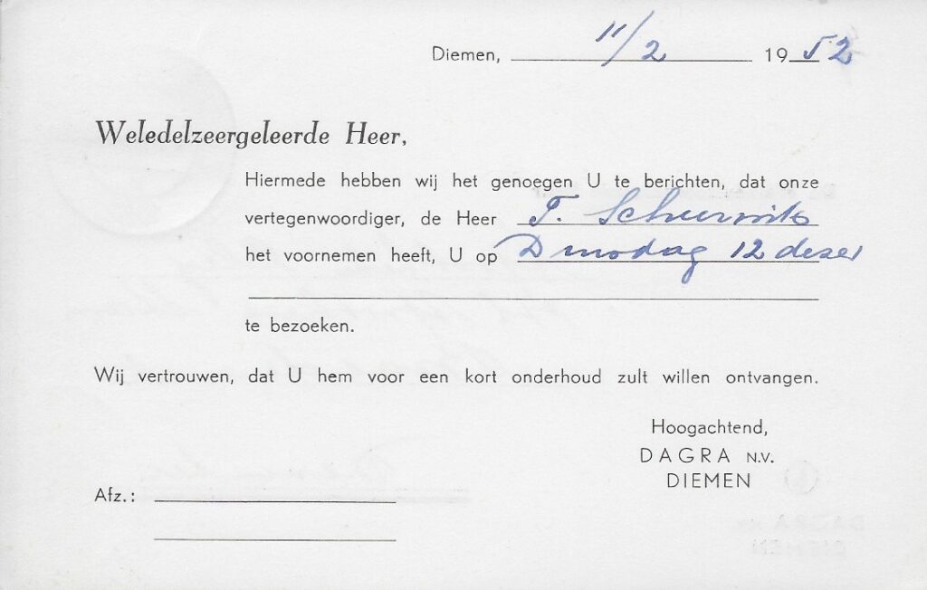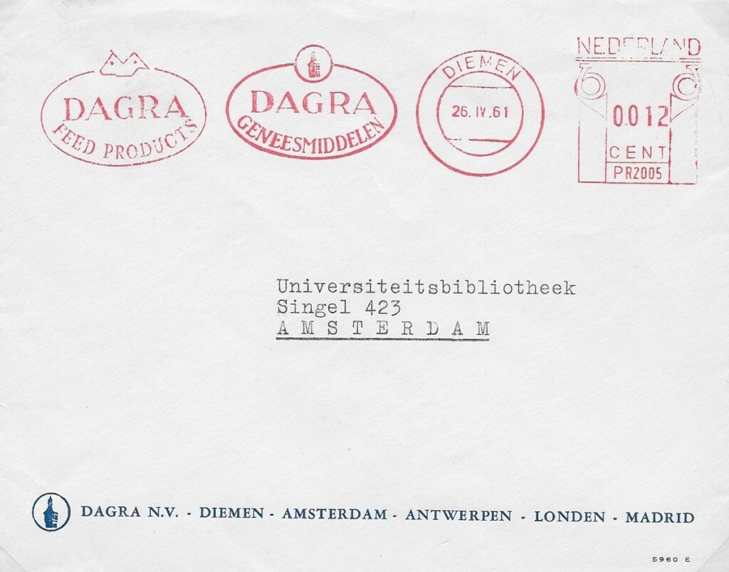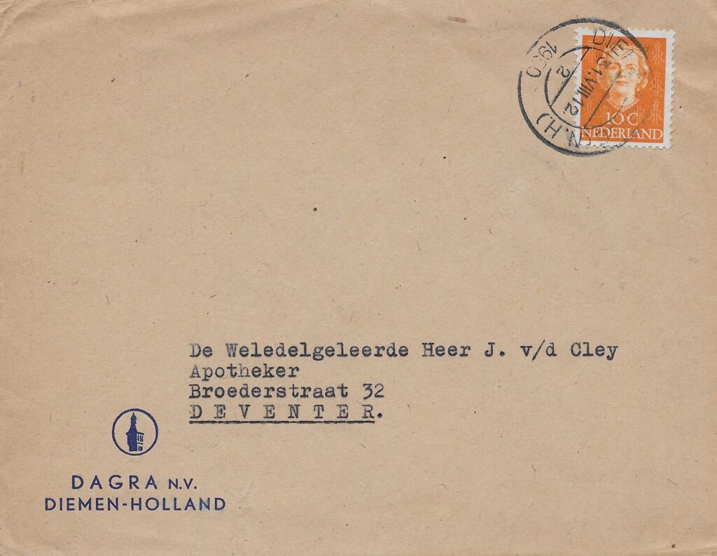 Opvallend is dat in het logo van Dagra de toren van de Diemense Sint Petrus ‘Bandenkerk is afgebeeld. Die ging de hele wereld over. Waarschijnlijk had de ontvanger geen idee van de betekenis van het logo.