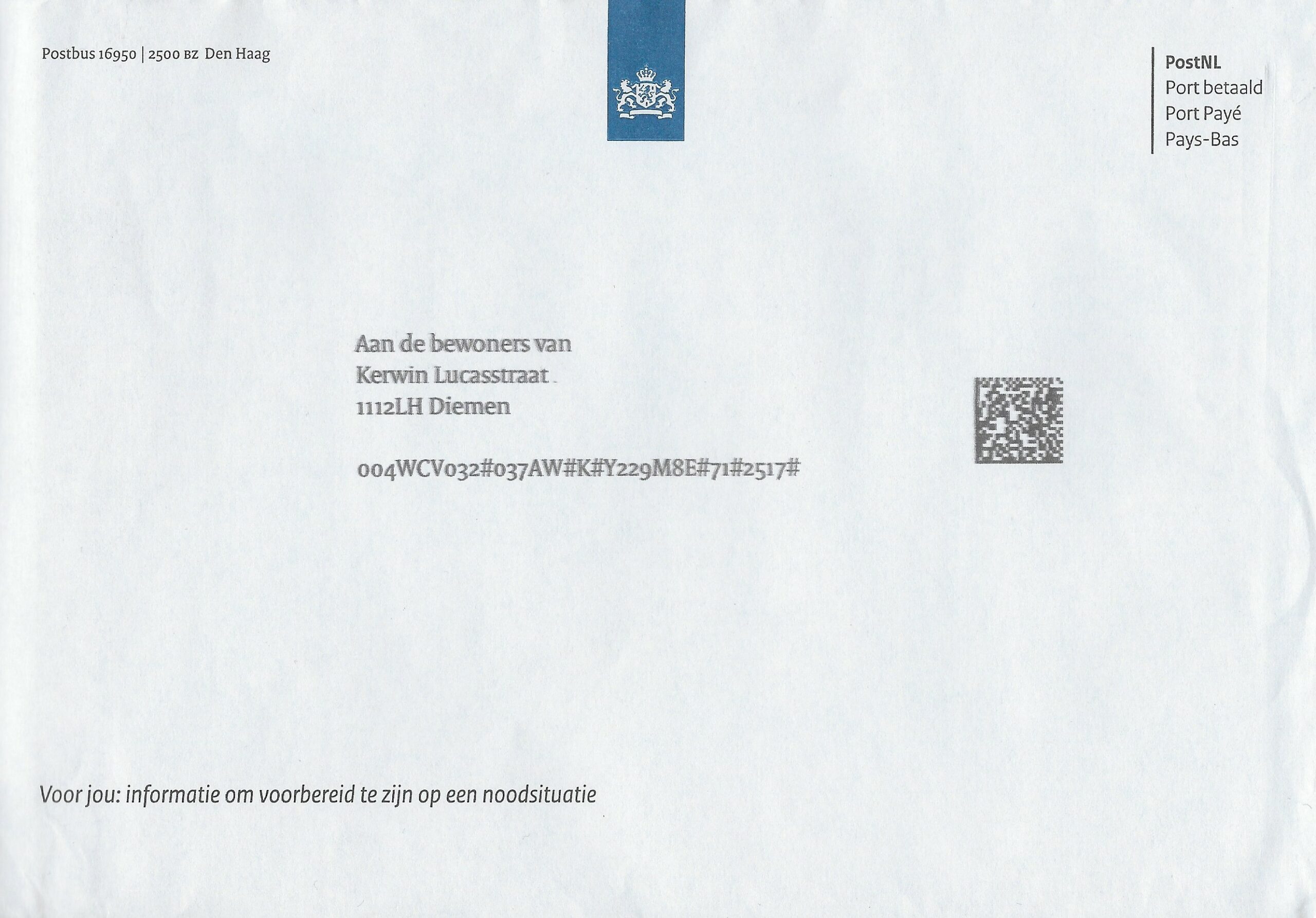 In november en december 2025 ontving elk Nederlands huisadres een brief van de Nationaal Coördinator Terrorismebestrijding met informatie om voorbereid te zijn op een noodsituatie. De brief bevatte een brochure ‘Bereid je voor op een noodsituatie’. Daarin wordt uitgelegd waarom de brochure werd verspreid. De brochure probeert uit te leggen dat een noodsituatie een onverwachte gebeurtenis is waardoor het dagelijks leven wordt verstoord. Dan kan het gaan om een grote stroomstoring, een digitale aanval of een overstroming door heel veel regen. Die wel 72 uur kan duren. Dan werken dingen niet meer zoals we gewend zijn. Er is geen elektriciteit waardoor het licht, verwarming, koeling, elektrisch fornuis, internet, liften, verkeerslichten en openbaar vervoer uitvallen. Mensen komen vast te zitten in de lift, 112 en hulpdiensten zijn overbelast en slecht bereikbaar, pinautomaten doen het niet en de rolluiken van supermarkten gaan automatisch naar beneden. Het verkeer is een chaos en benzinepompen werken niet meer. Het eten in de koelkast en vriezer bederft. De brochure roept de burgers op om zich voor te bereiden op zo’n noodsituatie, omdat de hulpdiensten in het begin de handen vol hebben aan het herstel van de verbindingen, en pas na enige dagen in staat zullen zijn om weer te opereren. De burger is dus in de eerste dagen aan zich zelf overgelaten en moet zich daar op voorbereiden door het aanschaffen van een noodpakket.