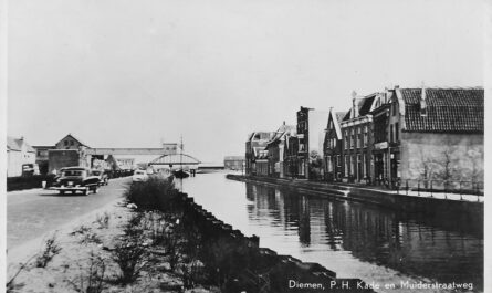 Deze ansichtkaart van de Ouddiemerlaan werd in 1944 verzonden naar Zaandam. Links het gebouw van de Boerenleenbank Diemen dat dateert uit 1938. De bank werd in 1904 opgericht en nadat de bank gevestigd was in diverse particuliere woningen van de kassier van de bank, werd de bank in 1938 in dit ruime, voor die tijd moderne gebouw gevestigd.